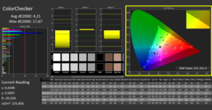 | Colorchecker dE 2000 calibrated * | 4.21 | 0.77 82% | 0.76 82% | 4.4 -5% | 1.32 69% | 2.33 45% | 3.59 15% | |
