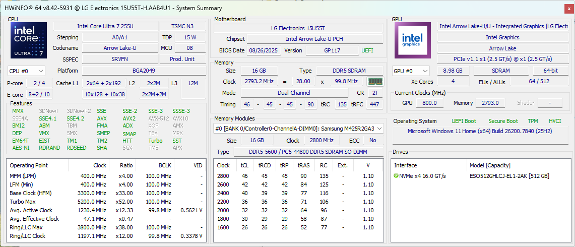 | LG Gram 15U55T Intel Core Ultra 7 255U ⎘ Intel Graphics 4-Core iGPU (Meteor / Arrow Lake) ⎘ 16 GB Pamięć | Amazon: Cena katalogowa: 800 USD | 1.6 kg | 19.3 mm | 15.60" 1920x1080 141 PPI IPS | |