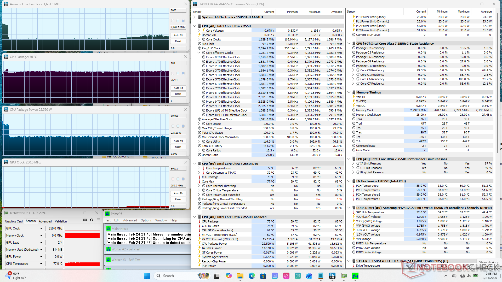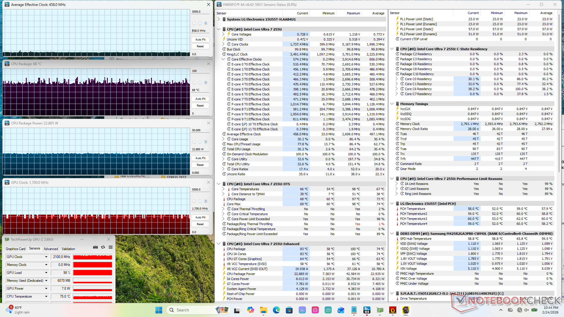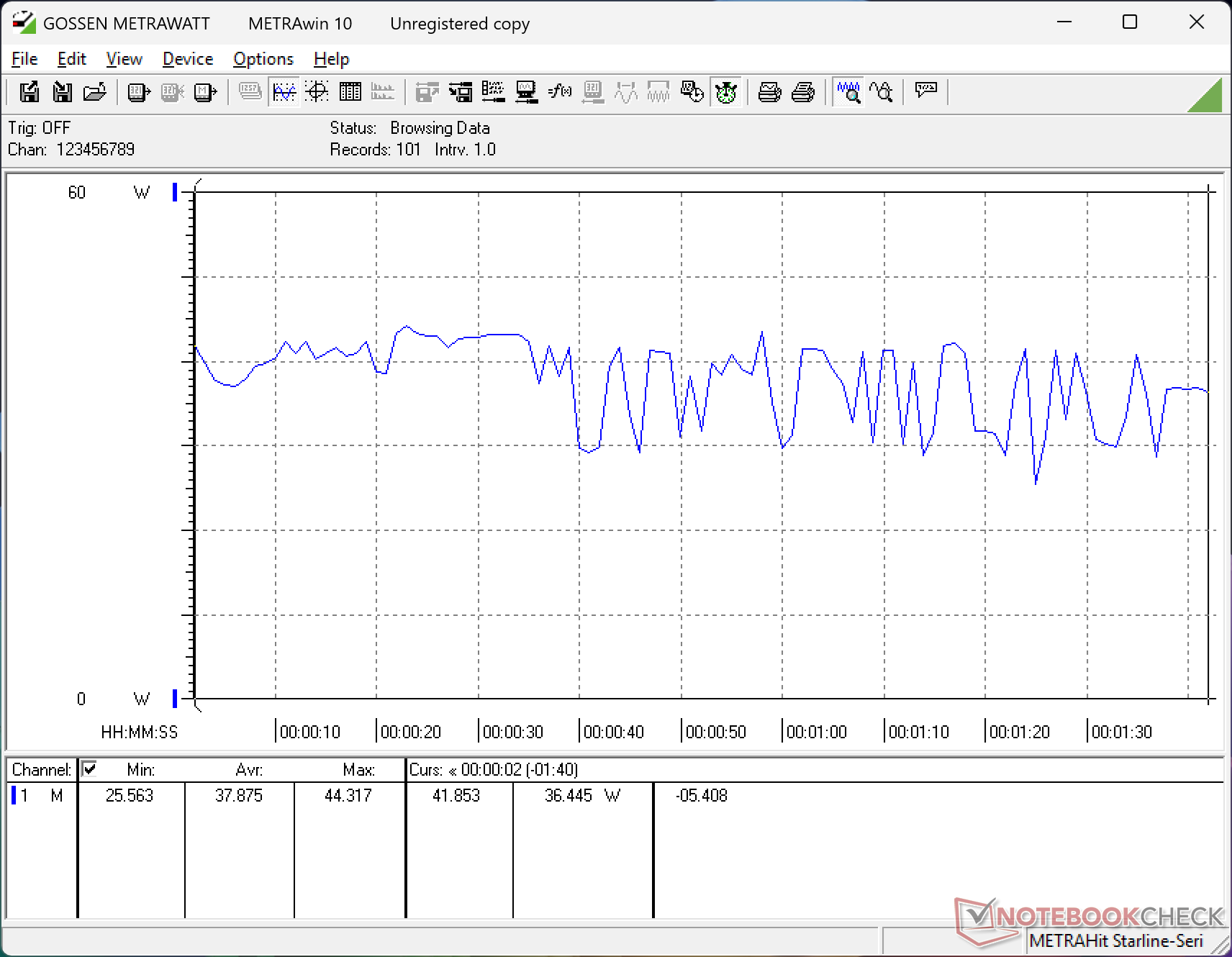 Core Ultra 7 255U może nie jest najszybszy, ale jest zdecydowanie wydajny. Nasz system prawie zawsze wymagał mniej energii niż Raptor Lake-P LG Gram SuperSlim, zapewniając jednocześnie prawie taką samą lub lepszą wydajność.