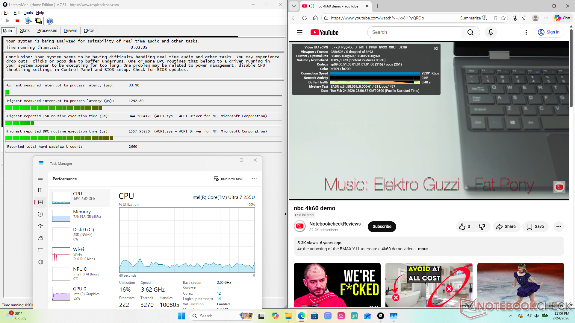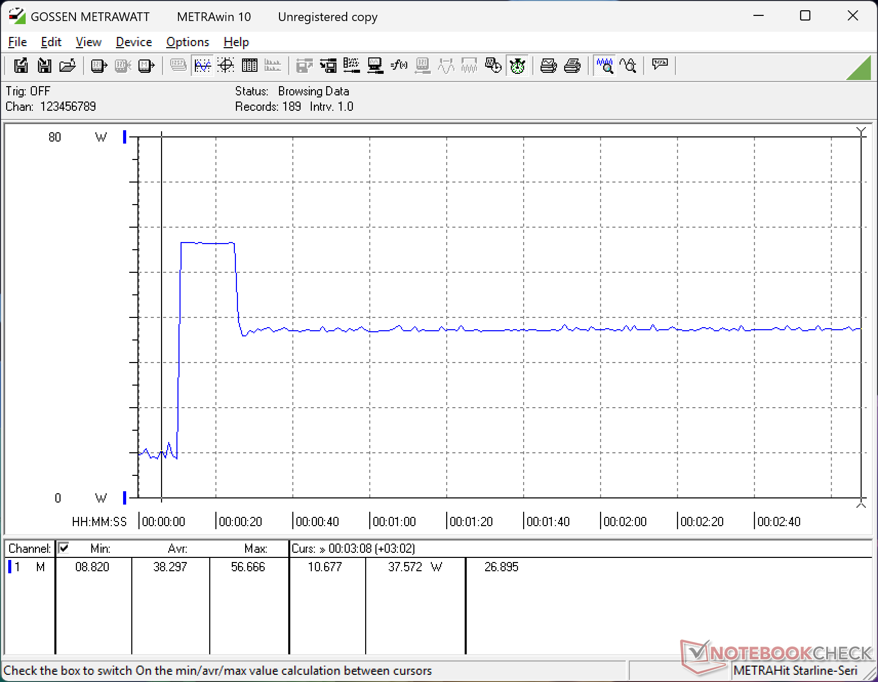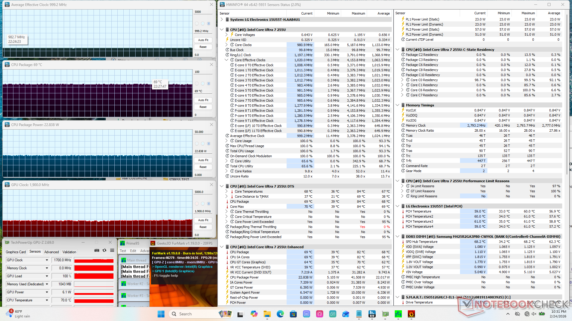 Core Ultra 7 255U może nie jest najszybszy, ale jest zdecydowanie wydajny. Nasz system prawie zawsze wymagał mniej energii niż Raptor Lake-P LG Gram SuperSlim, zapewniając jednocześnie prawie taką samą lub lepszą wydajność.