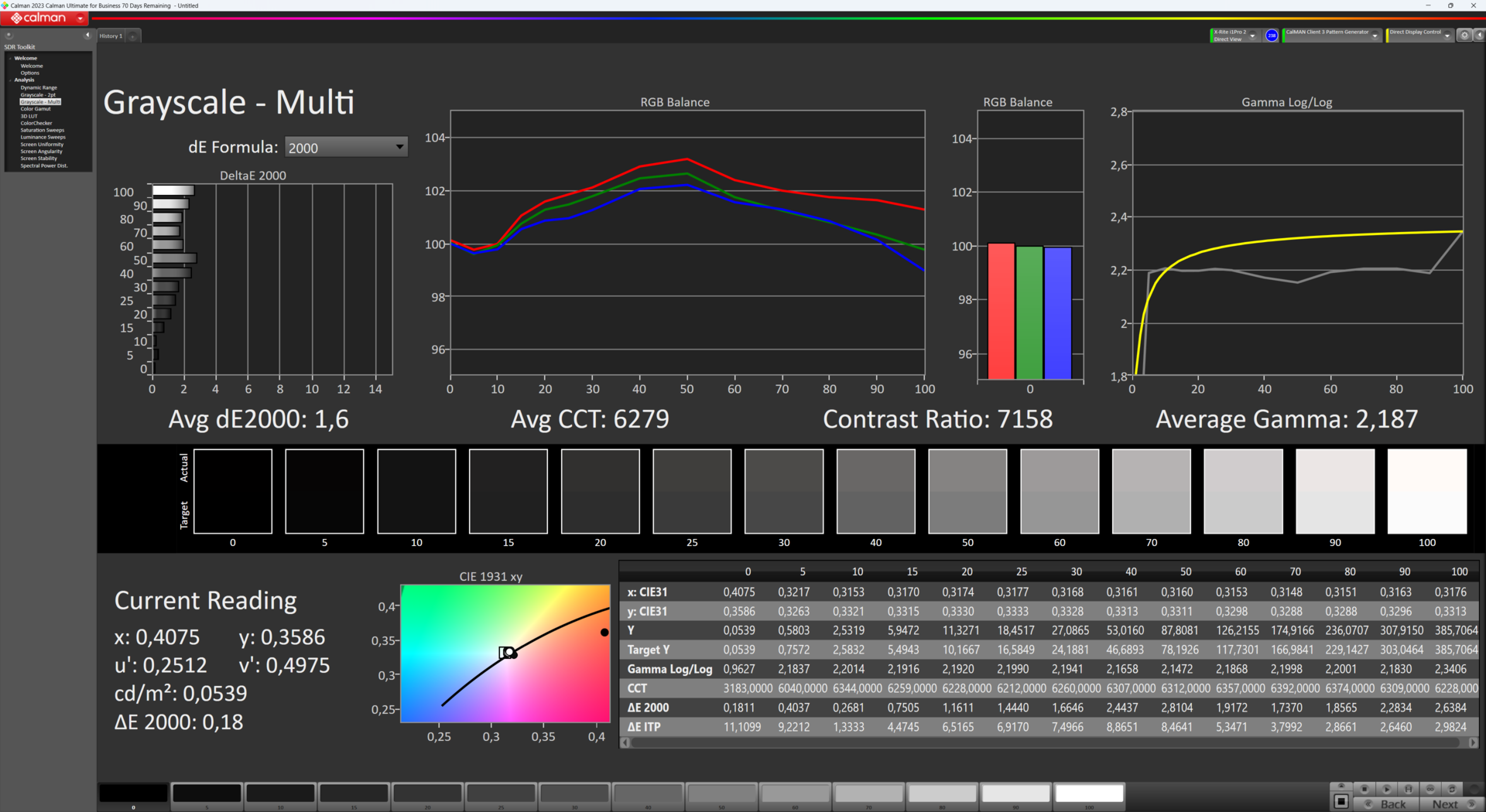 | Greyscale dE 2000 * | 2.63 | 2.3 13% | 1.8 32% | 2.74 -4% | 1.8 32% | 3.06 -16% |