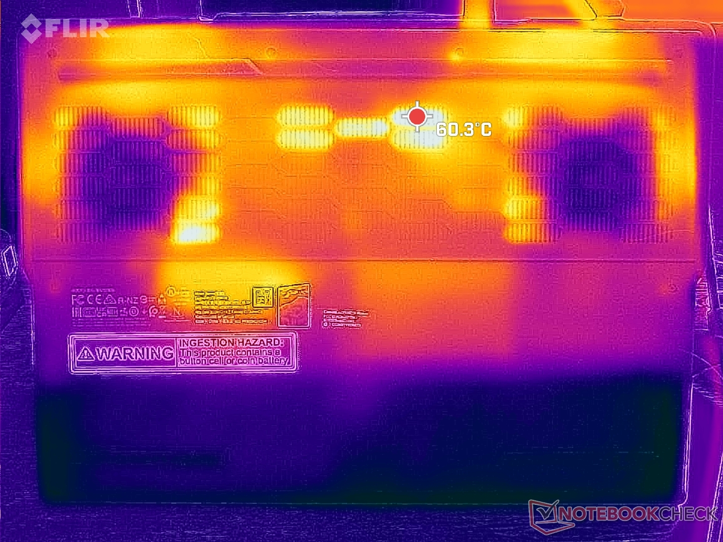 Temperatury powierzchni mogą być wyższe niż te, które odnotowaliśmy w zeszłorocznym modelu. Na przykład podczas grania, znaczna część klawiatury będzie miała temperaturę 40 C w porównaniu do zaledwie 36 C na Legion Pro 5 16IRX8 lub 34 C na Alienware m16 R2. Podpórki pod nadgarstki i klawisze WASD pozostaną chłodniejsze, aby zapewnić wygodę dłoni podczas grania, ale reszta laptopa będzie dość ciepła.