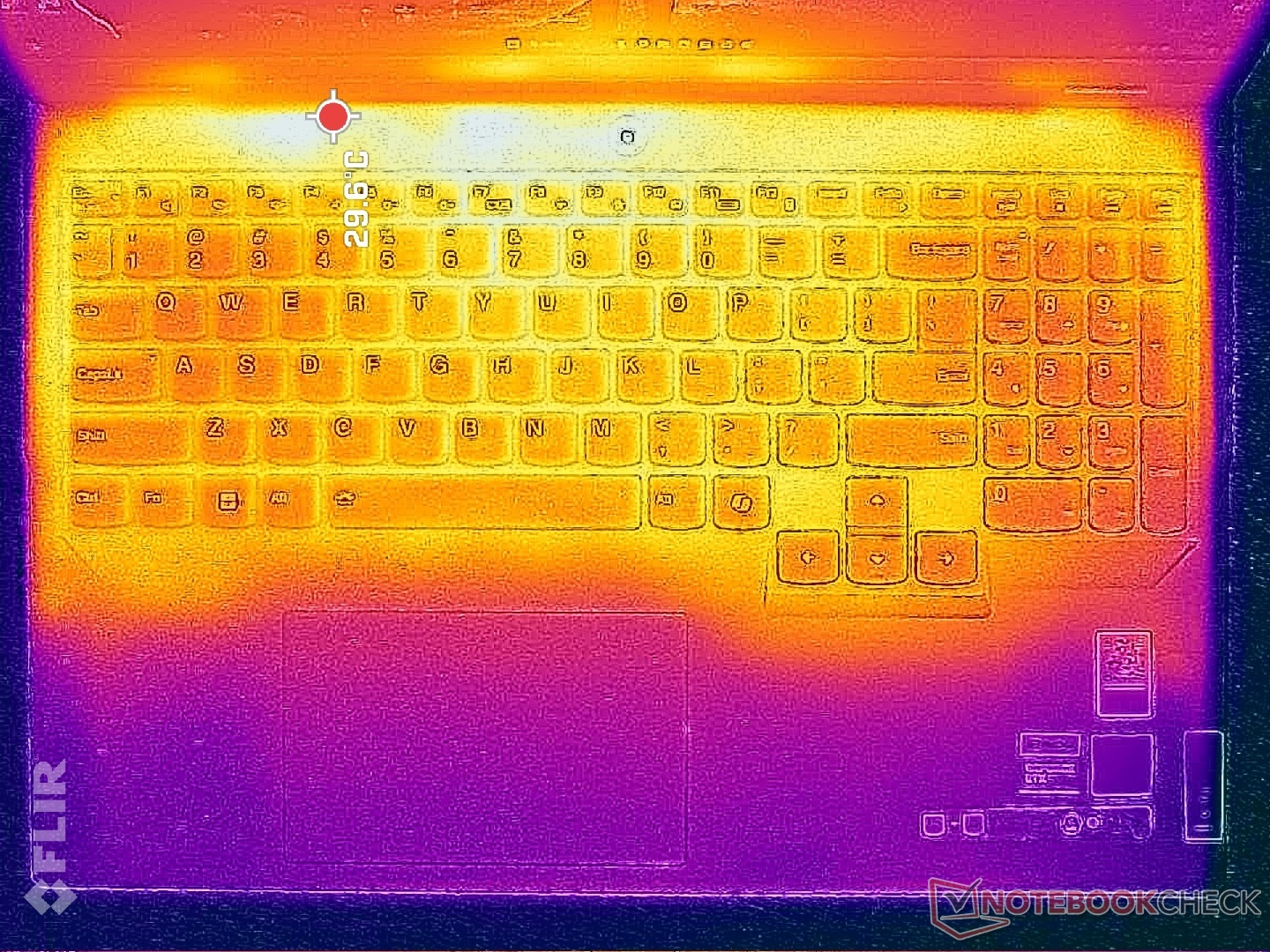 (+) Podpórki pod nadgarstki i touchpad są chłodniejsze niż temperatura skóry i maksymalnie 28 °C / 82.4 F i dlatego są chłodne w dotyku.