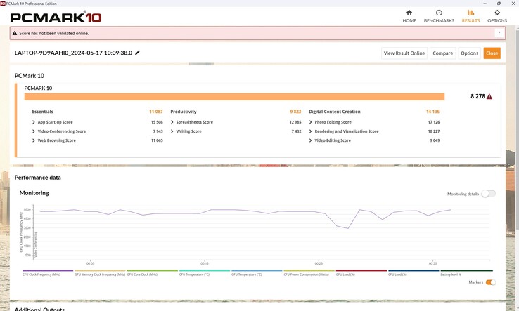 W naszym teście pętli procesor działał bardzo konsekwentnie i tylko z minimalnym spadkiem wydajności w ciągu 30 minut. Osiągnął on lepsze wyniki niż większość konkurentów - jedynie Legion Pro 5i z procesorem i9-14900HX