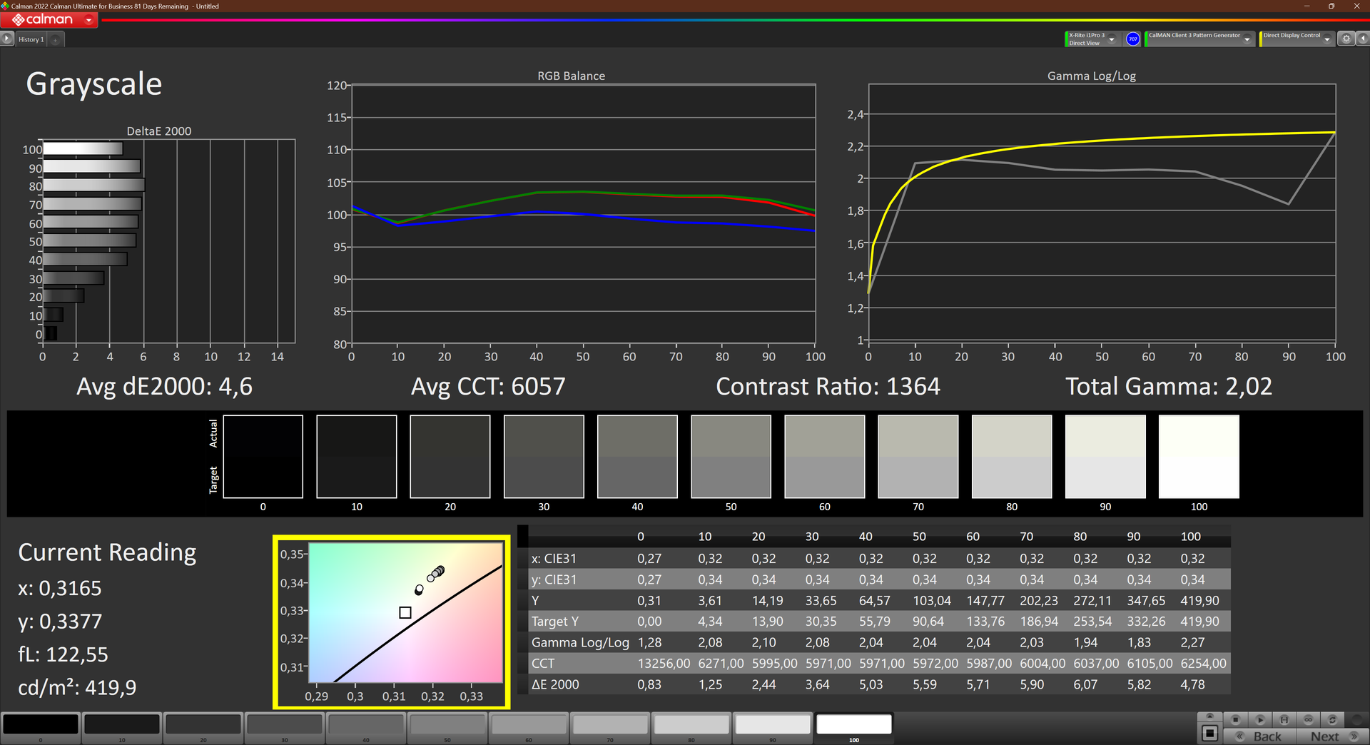 ΔE Greyscale Calman: 4.6 | ∀{0.09-98 Ø5}