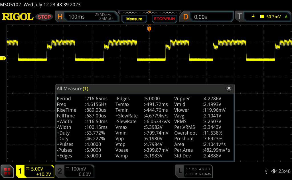 (+) | wzloty są liniowe (3.6% delta do poprzedniej częstotliwości)