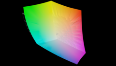 Pokrycie gamy kolorów przez Lenovo ThinkPad T14s G4 OLED jest doskonałe. sRGB i DCI P3 są pokryte w 100%, pokrycie AdobeRGB jest również prawie kompletne i wynosi 97,6%. Panel ten powinien dobrze sprawdzić się przy edycji zdjęć w tych szerokich gamach kolorów.
