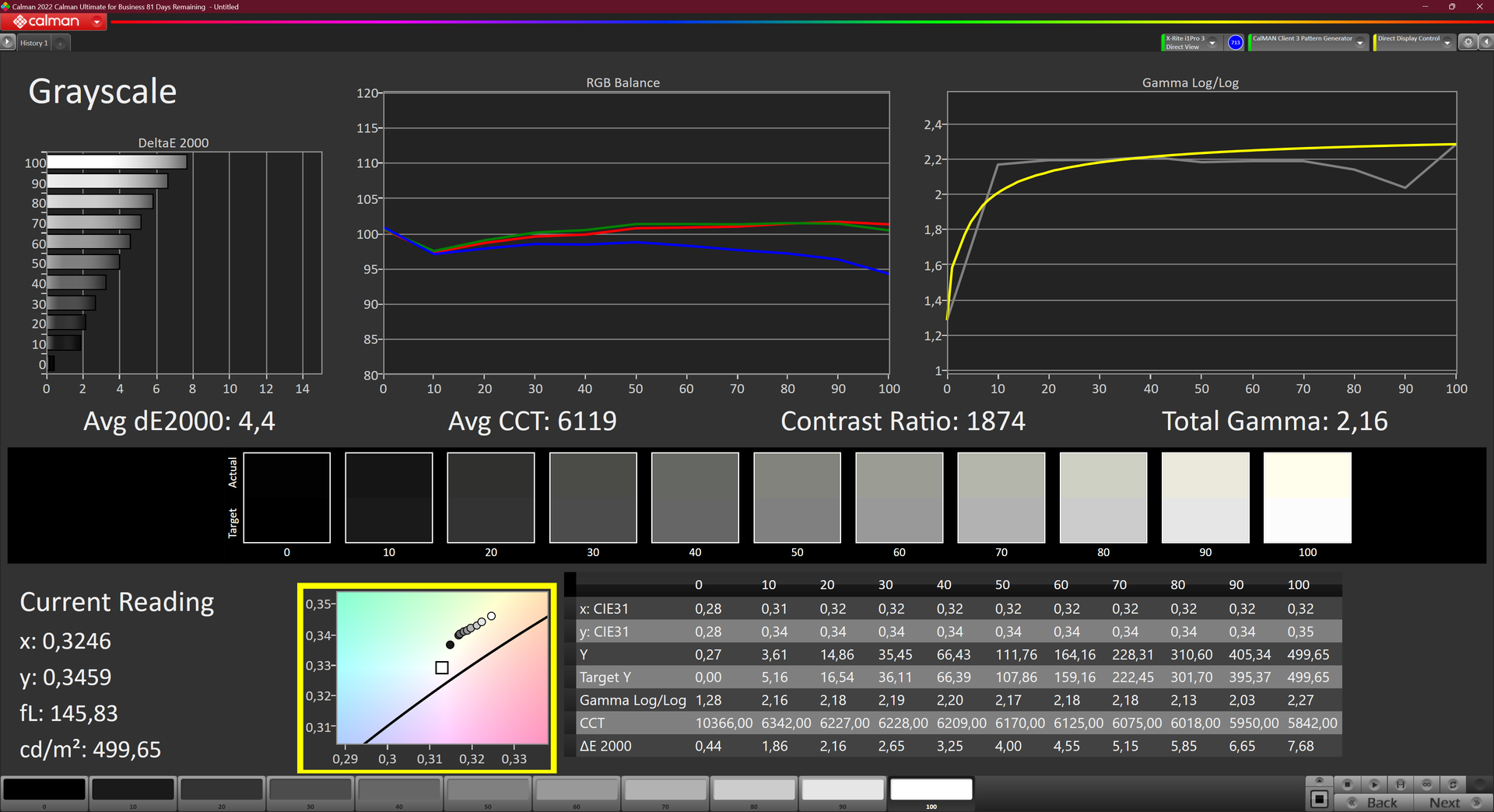 ΔE Greyscale Calman: 4.4 | ∀{0.09-98 Ø5}