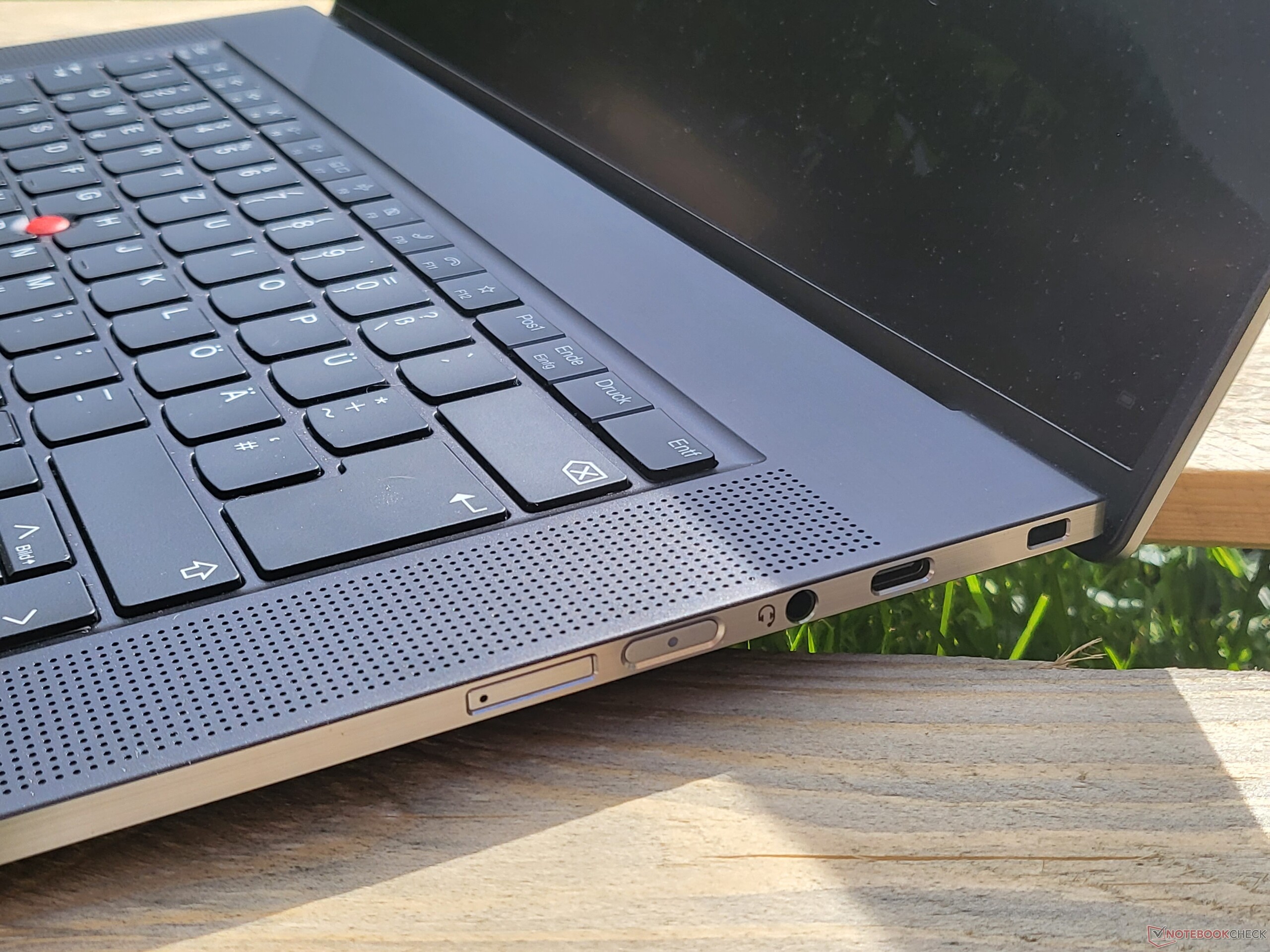 Wyposażenie w złącza jest identyczne jak w Dellu XPS 15 9520, co czyni je jednym z najsłabszych na naszym polu testowym. W tym punkcie Z16 wyraźnie pozostaje w tyle za ThinkPadem X1 Extreme, a nawet m.in Apple MacBookiem Pro 16przynajmniej oferuje HDMI.