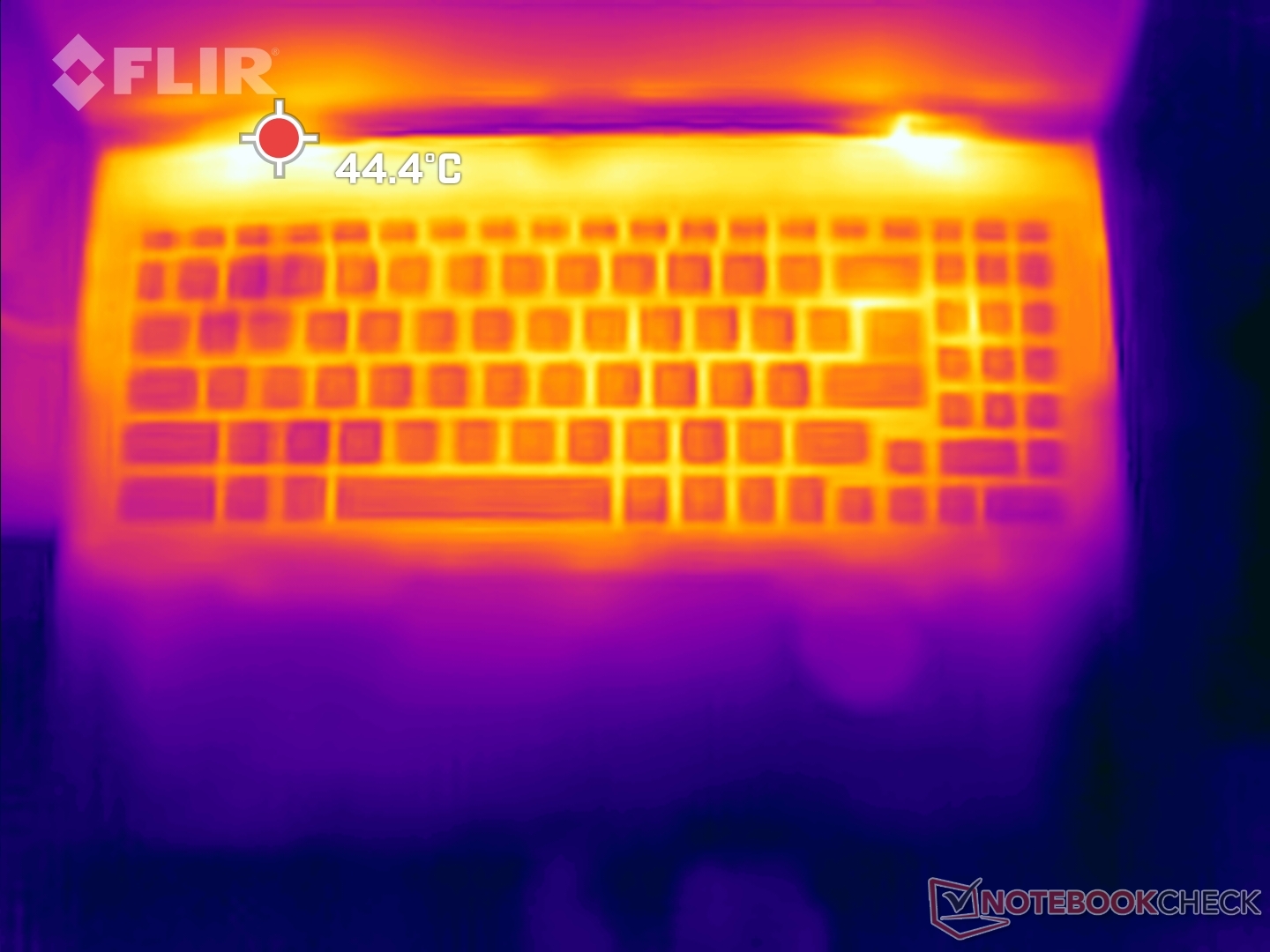 WASD, touchpad i obszary podparcia dłoni pozostały stosunkowo chłodne podczas testów obciążeniowych.