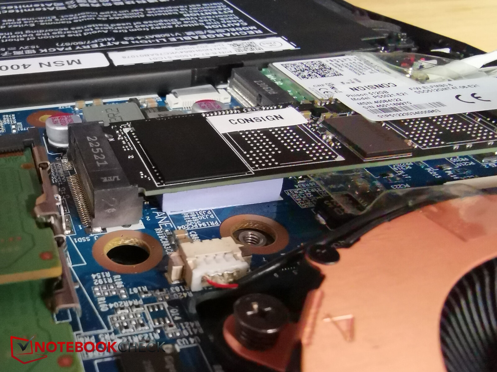Aby uzyskać dostęp do wewnętrznych komponentów, należy odkręcić 14 śrub krzyżakowych tego samego rozmiaru. Następnie można łatwo podważyć plastikową płytę bazową. Pod spodem znajdą Państwo układ chłodzenia z dużą ilością miedzi, przykręcaną baterię, dwa gniazda pamięci RAM, dysk SSD chłodzony dwoma podkładkami oraz wymienny moduł WiFi.