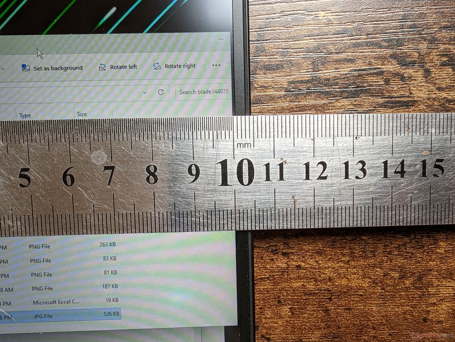 Przejście z 16:9 na 16:10 poszerzyło Blade 14, jednocześnie zmniejszając jego długość, co pokazuje poniższa grafika porównawcza dla kwadratowej powierzchni. Całkowita waga jest poza tym mniej więcej taka sama jak poprzednio i wynosi 1,8 kg.
