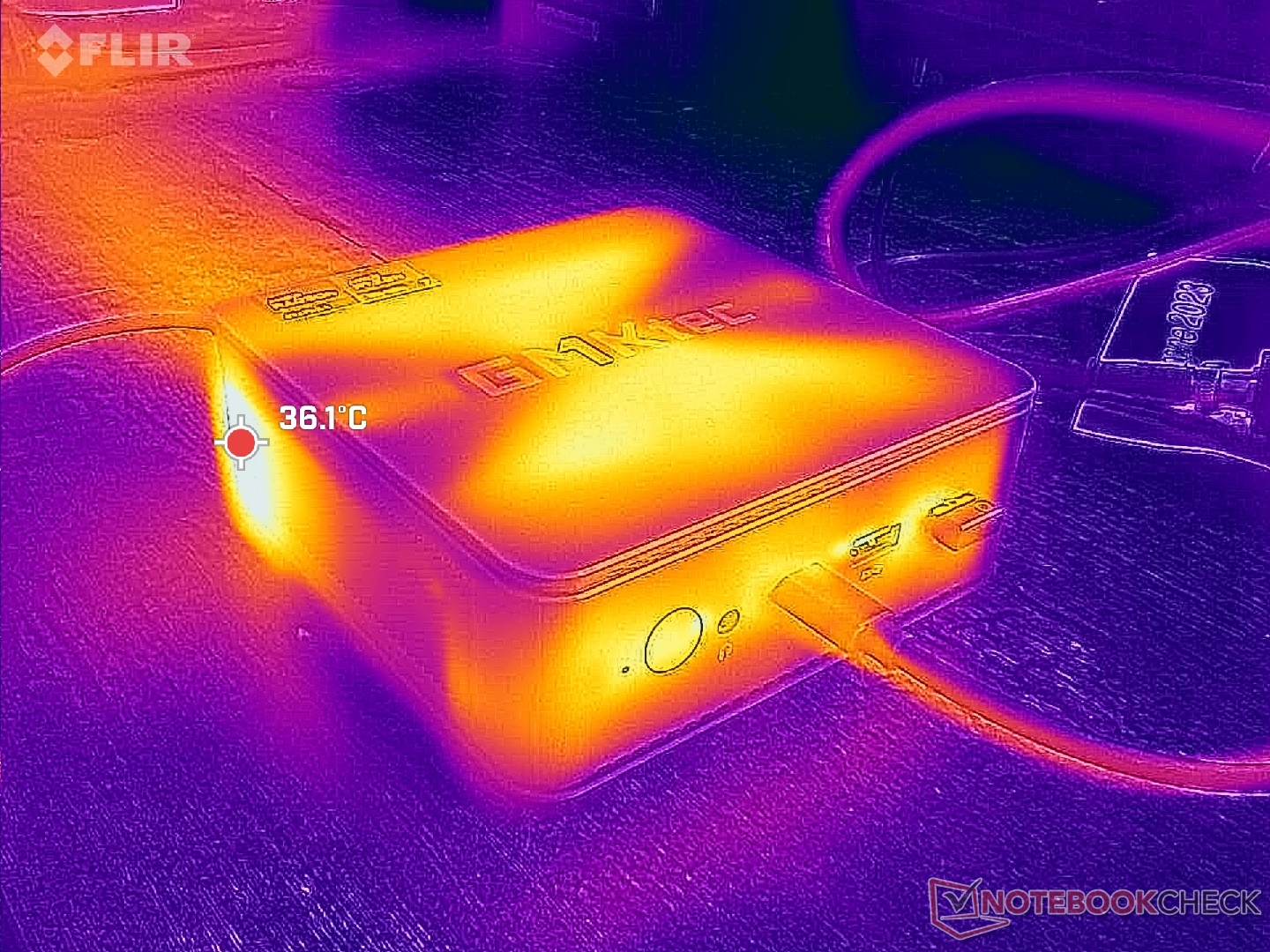 Uruchamianie bardziej wymagających obciążeń, takich jak gry, spowodowałoby hałas wentylatora między 44 a 48 dB(A), który byłby bardziej zauważalny i prawie tak głośny, jak niektóre laptopy do gier, takie jak MSI Stealth GS66. Co ciekawe, zakres hałasu wentylatora i zachowanie prawie odpowiada temu, co zaobserwowaliśmy na Geekom A7.