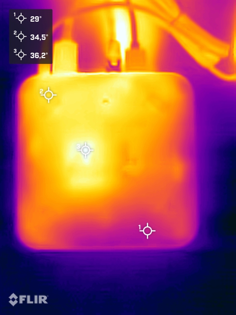 (+) W stanie bezczynności średnia temperatura górnej części wynosi 29.5 °C / 85 F, w porównaniu ze średnią temperaturą urządzenia wynoszącą 32.4 °C / ### class_avg_f### F.