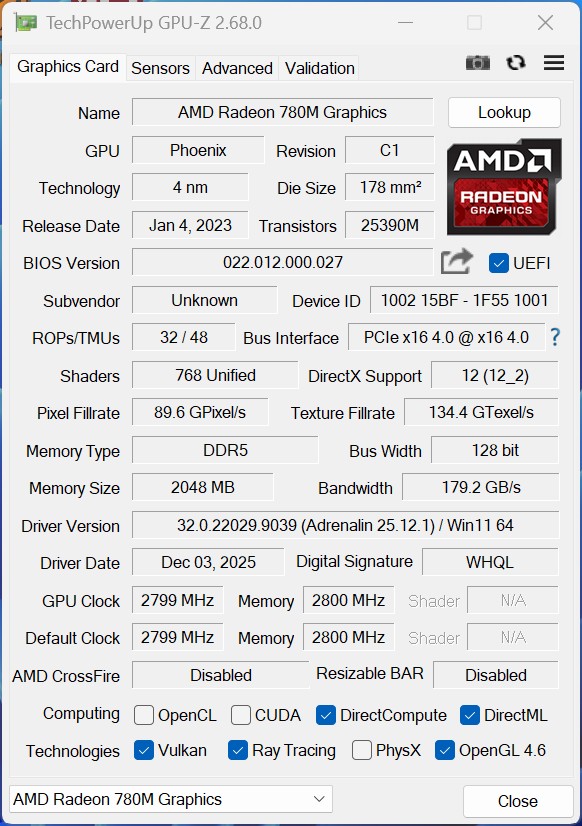 | 3DMark Steel Nomad Score | 257 pkt. | |