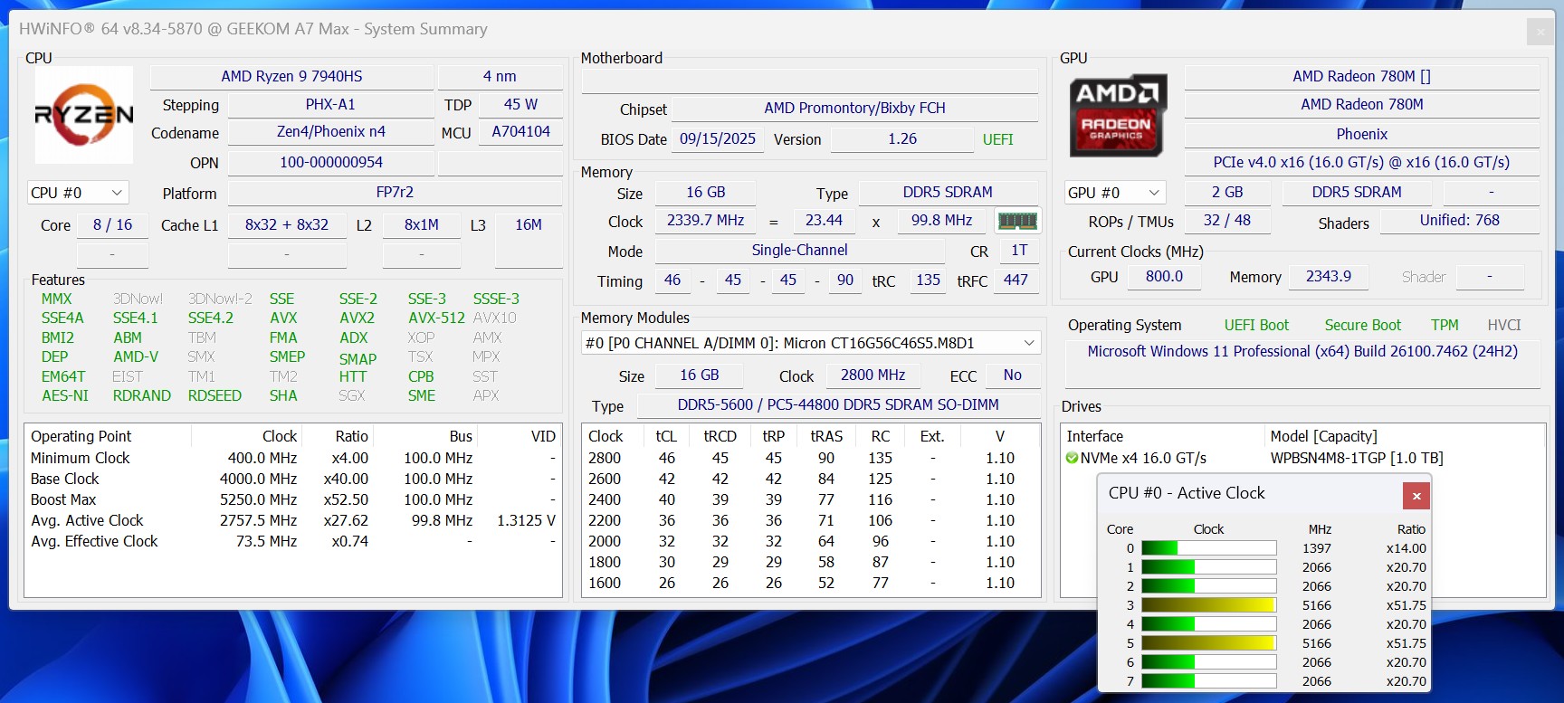| Geekom A7 Max, R9 7940HS (AV Pro SD microSD 128 GB V60) | |