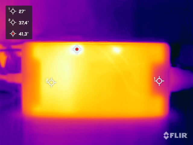 Obudowa Nipogi AD08 nagrzewa się tylko nieznacznie w trybie bezczynności i pod obciążeniem, a podczas naszych testów w żadnym momencie nie osiągnęła krytycznych temperatur. Jedynie tył obudowy miał zauważalne źródło ciepła w pobliżu wylotu wentylatora.