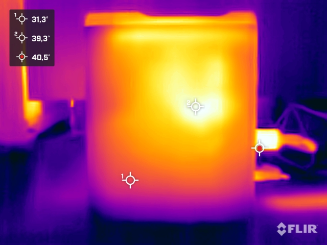 (+) Dno nagrzewa się maksymalnie do 34.5 °C / 94 F, w porównaniu do średniej 36.4 °C / 98 F