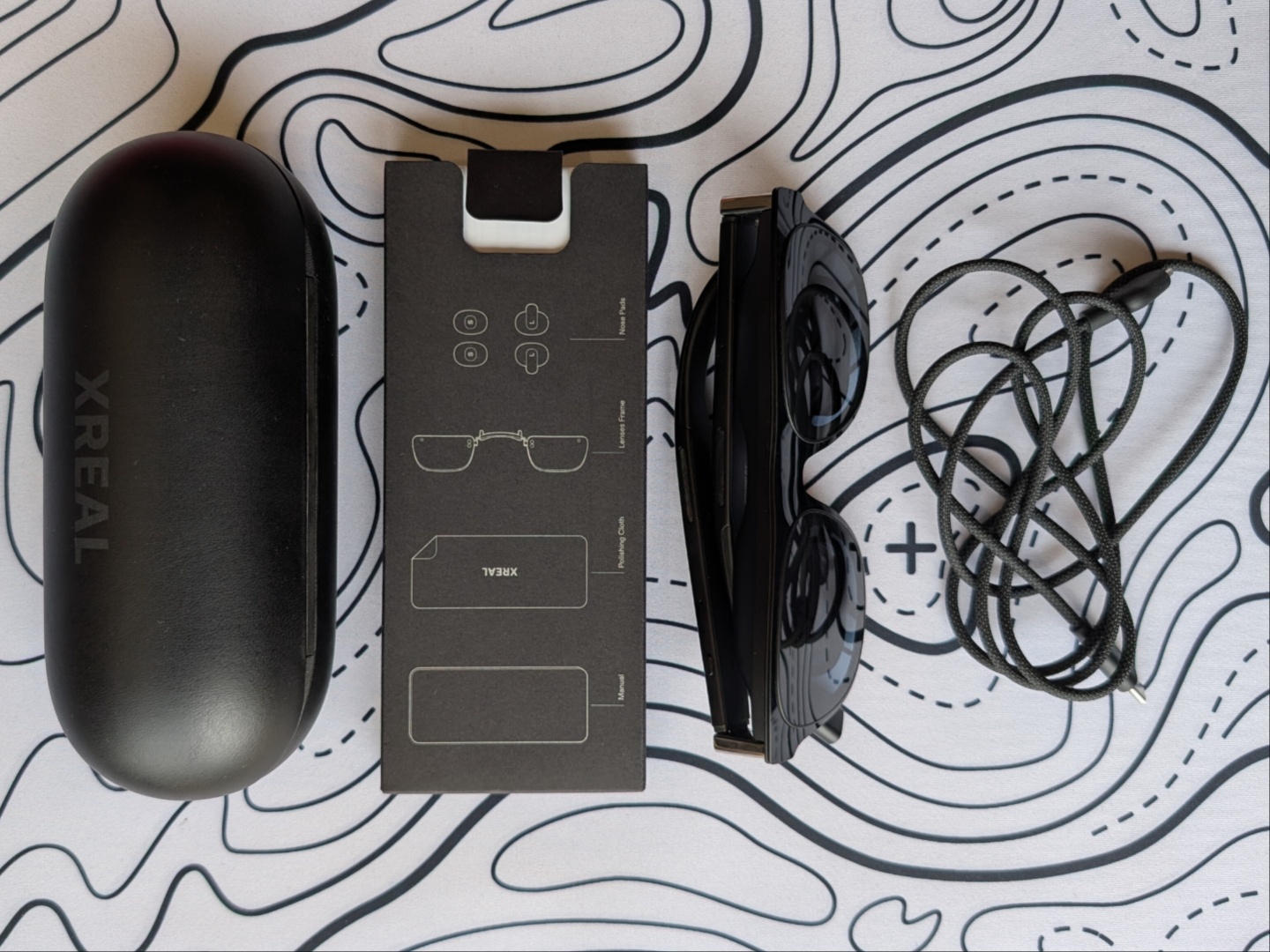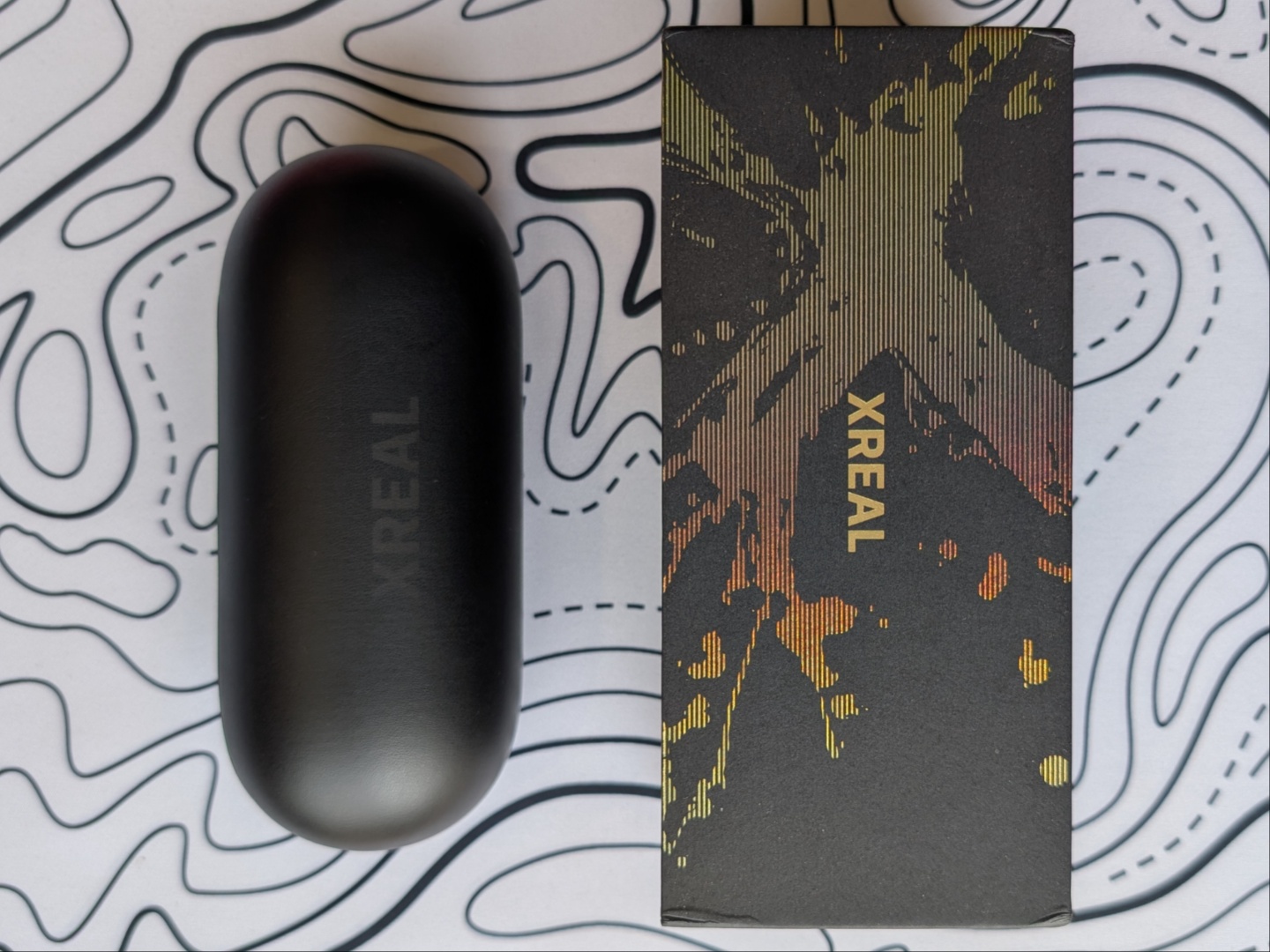 Okulary Xreal One Pro są starannie zapakowane w czarne pudełko ze złotymi akcentami, co zapewnia wrażenie wysokiej jakości. Wewnątrz umieszczono je w stosunkowo dużym etui, które ma miejsce na kabel USB typu C i okulary. Xreal zapewnia również ściereczkę z mikrofibry, ramkę na soczewki i różne rozmiary nosków, aby zapewnić idealne wrażenia wizualne. Ci, którzy potrzebują soczewek korekcyjnych (tak jak ja), otrzymają zestaw dostarczony osobno przez HonsVR.