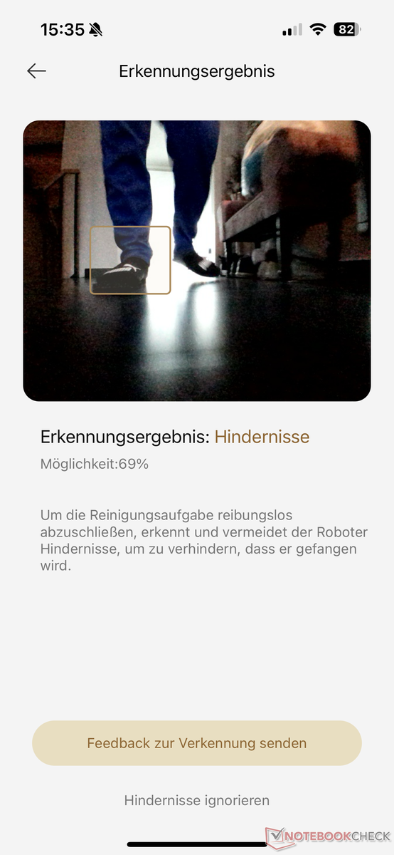 Podczas testów nawigacja i wykrywanie przeszkód działały w większości przypadków niezawodnie. Nie było znaczących kolizji, a w większości przypadków bez problemu rozpoznawał nawet cienkie nogi krzeseł. Jednak obiekty leżące lub stojące na drodze muszą mieć określony rozmiar. Na przykład niemiłosiernie zaplątuje się w sznurowadła leżące w pobliżu - ale tak jest też w przypadku innych modeli.
