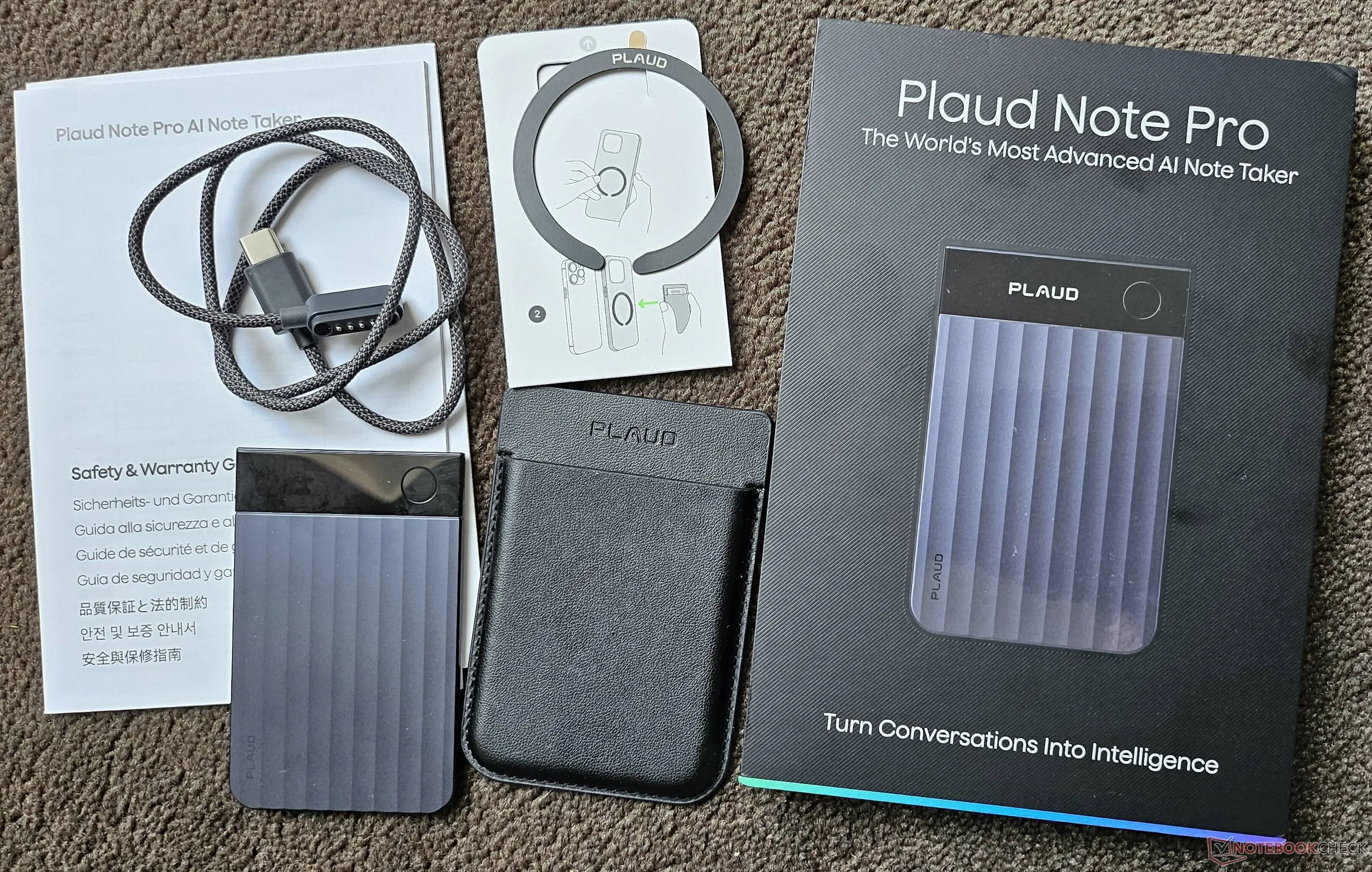 Kompaktowy pakiet zawiera wszystko, czego potrzebujesz: Plaud Note Pro, magnetyczne etui ze sztucznej skóry, które ściśle otacza urządzenie, magnetyczny kabel USB-C do ładowania do podłączenia do smartfona, skróconą instrukcję obsługi i samoprzylepny pierścień magnetyczny. Podczas korzystania z etui, magnetyczny port ładowania, mały ekran i przycisk sterowania pozostają dostępne. Jeśli chcą Państwo szybko naładować Plaud Note Pro za pośrednictwem komputera, aby oszczędzić baterię smartfona, konieczne będzie znalezienie adaptera, jeśli komputer nie ma portu USB-C.