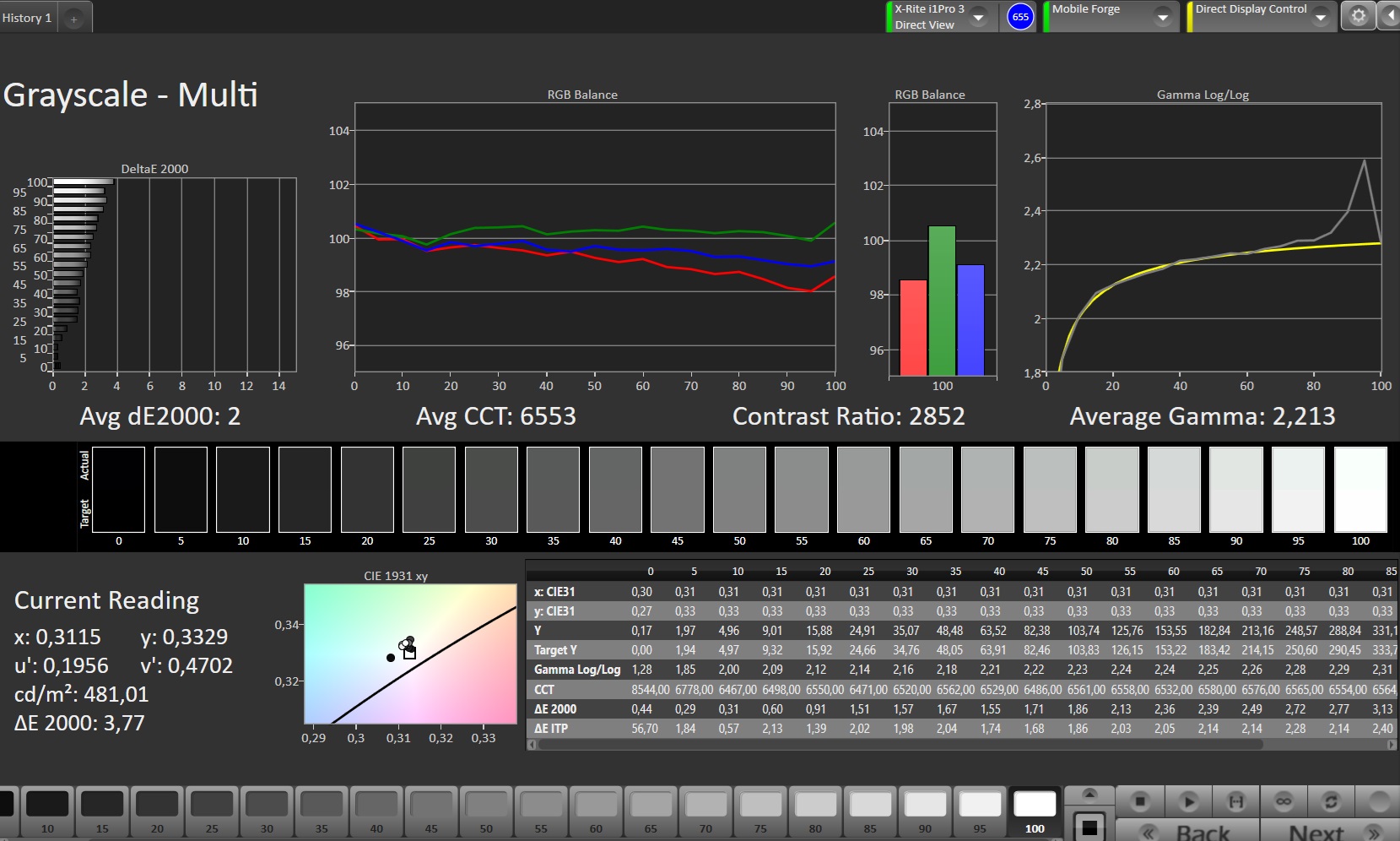 ΔE Greyscale Calman: 2 | ∀{0.09-98 Ø5}