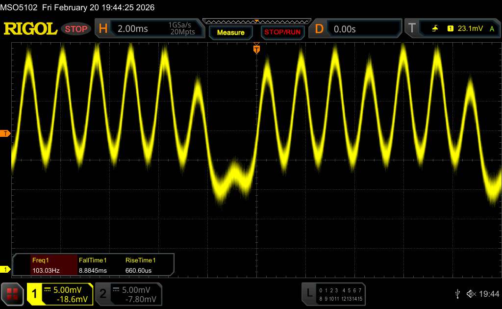 (+) | wzloty są liniowe (3.8% delta do poprzedniej częstotliwości)