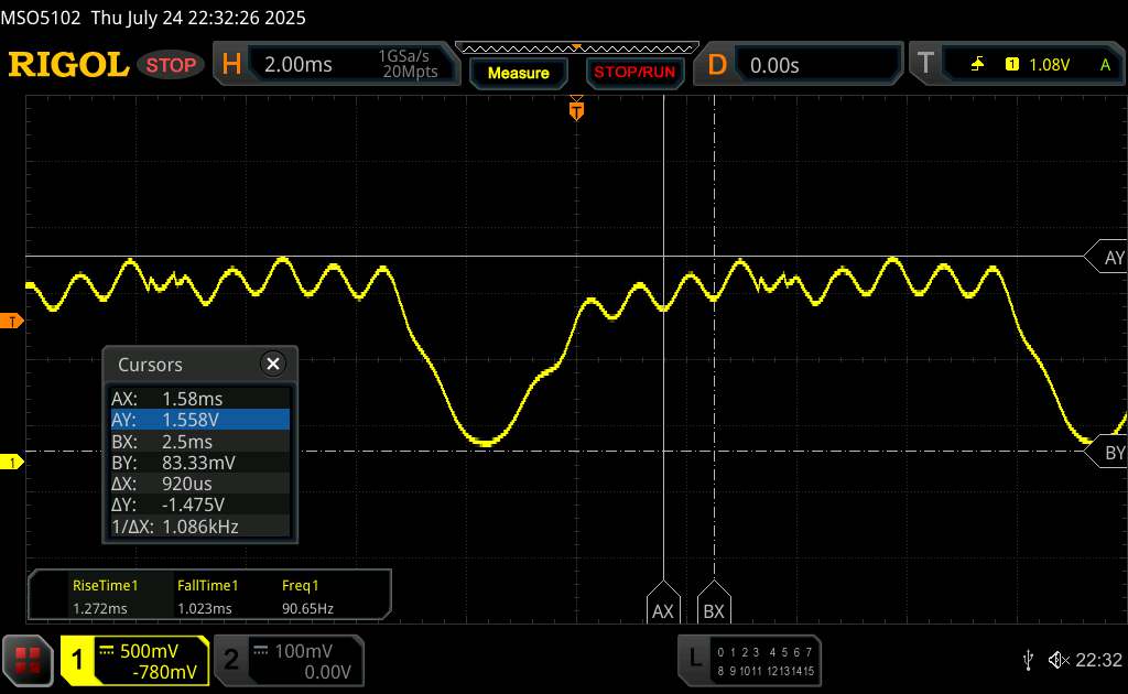 (+) | wzloty są liniowe (4.6% delta do poprzedniej częstotliwości)