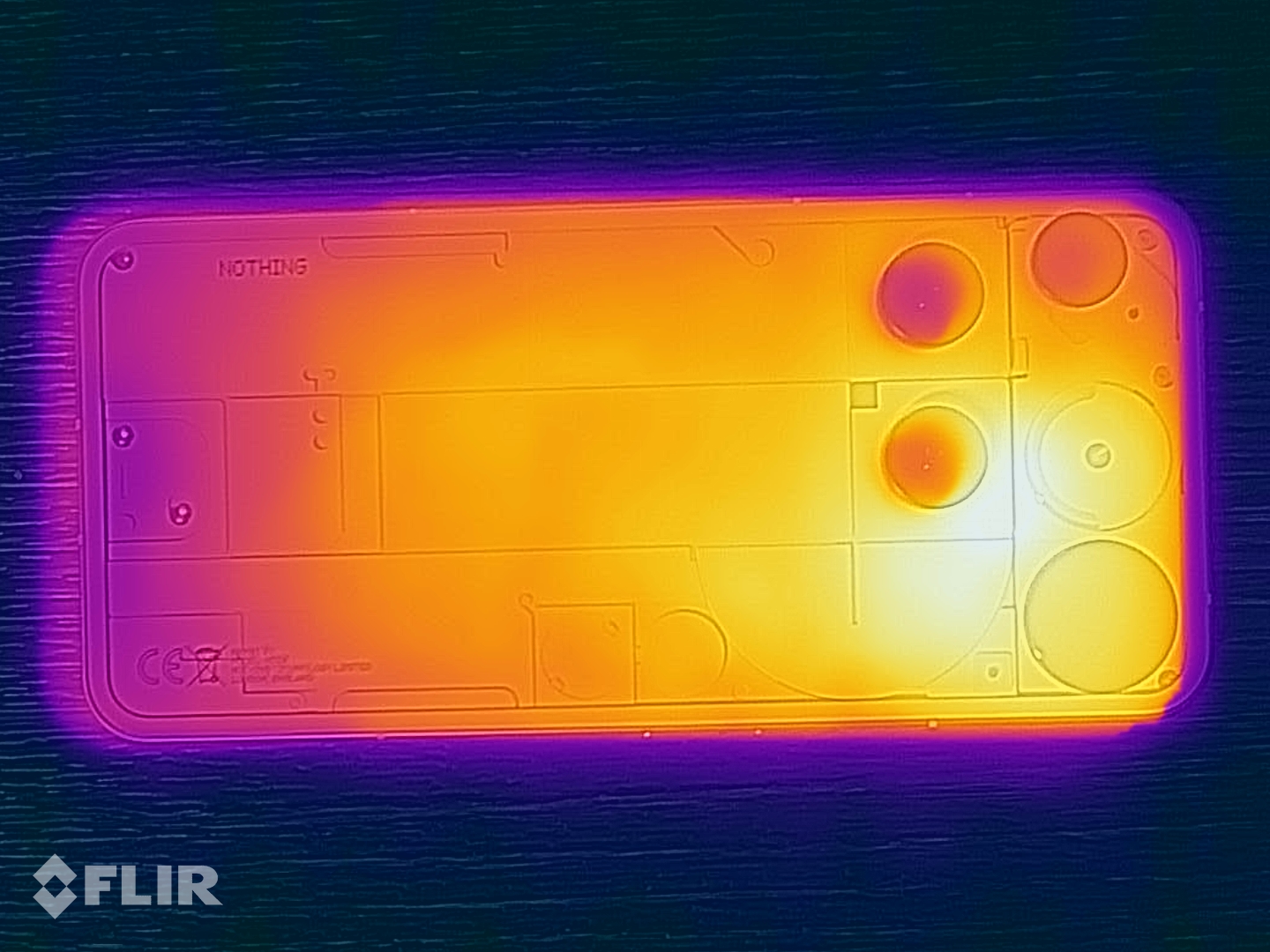 Nothing Phone (3) może się bardzo nagrzewać pod obciążeniem. W teście obciążeniowym z Burnout Benchmark zmierzyliśmy temperatury powierzchni do 52,1 °C. Nie będą Państwo chcieli dotykać smartfona pod takim obciążeniem.