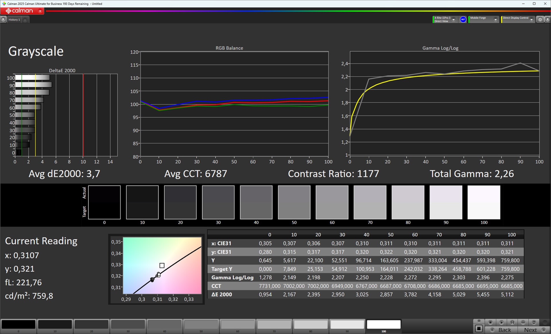 ΔE Greyscale Calman: 3.7 | ∀{0.09-98 Ø5.1}