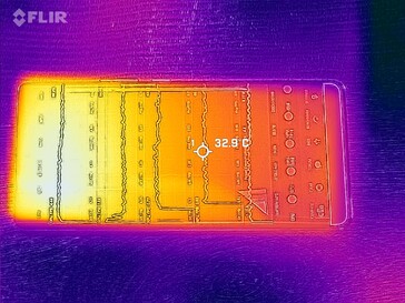 Pod dłuższym obciążeniem powierzchnia telefonu stała się zauważalnie ciepła, osiągając nawet 41,1°C (106°F). Nie jest to jednak powód do niepokoju. Testy obciążeniowe 3DMark wykazały, że wydajność nie spada nawet przy długotrwałym obciążeniu: telefon nadal osiągał tę samą liczbę klatek na sekundę nawet po 20 uruchomieniach.