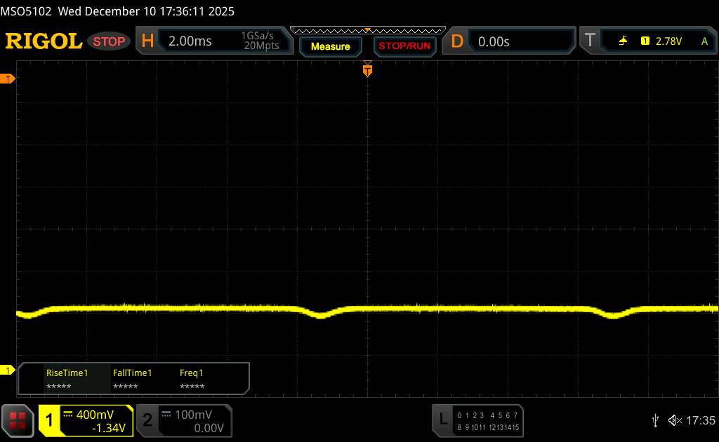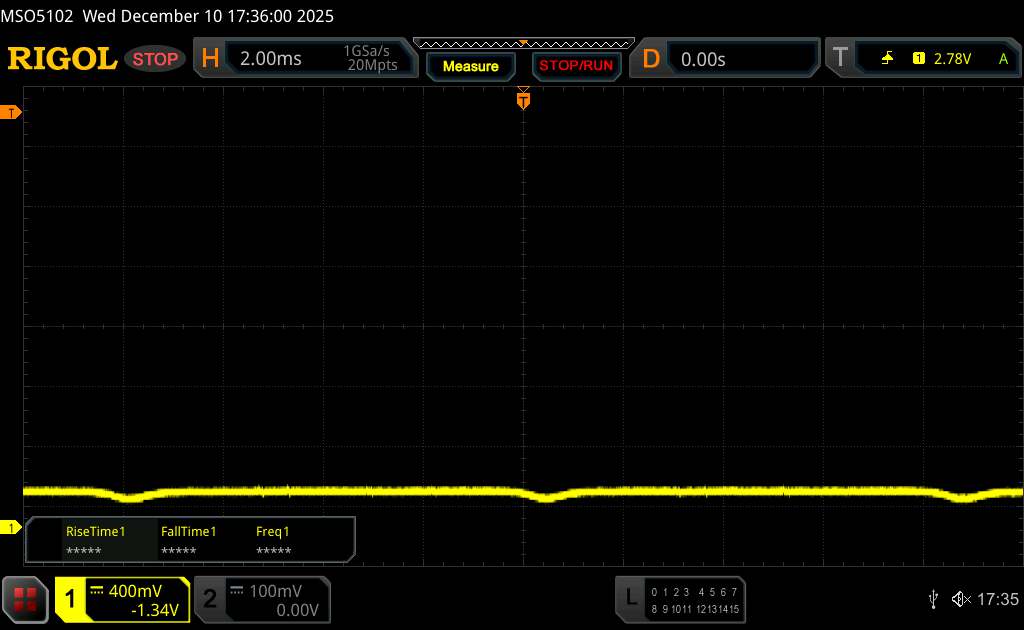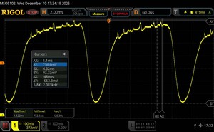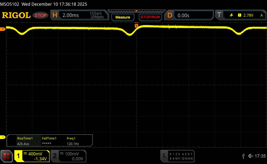 W specyfikacji Poco podaje, że regulacja jasności odbywa się za pomocą prądu stałego. Pod oscyloskopem okazuje się jednak, że jest to raczej ściemnianie PWM o wysokiej częstotliwości i niskiej częstotliwości bazowej.