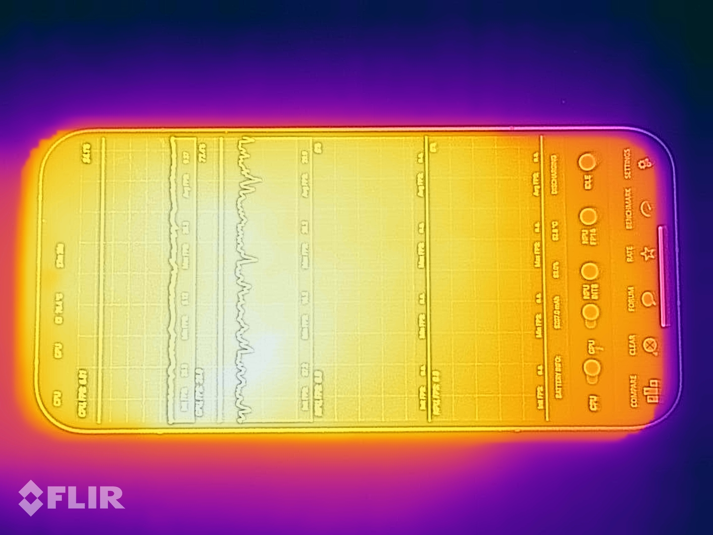 Temperatury powierzchniowe gwałtownie rosną pod obciążeniem, ale pozostają w nieszkodliwym zakresie. Dławienie SoC jest również dość wysokie w teście warunków skrajnych.