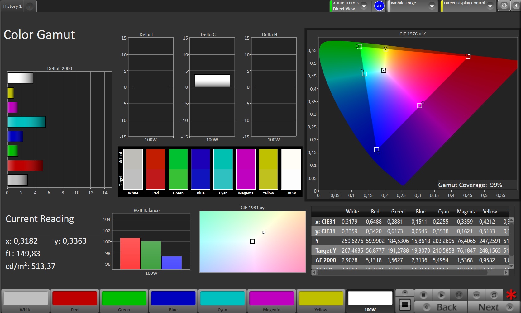 | Colorchecker dE 2000 max. * | 7.09 | 2.5 65% | 5.49 23% | 6.69 6% | 3.9 45% |