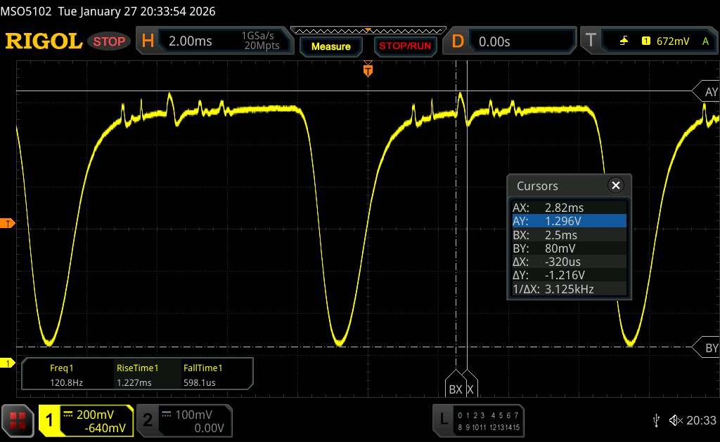 (+) | wzloty są liniowe (1.8% delta do poprzedniej częstotliwości)