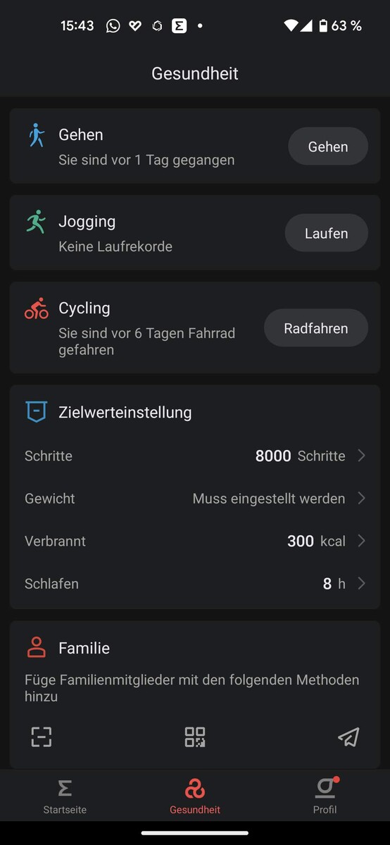 Konfiguracja T-Rex 2 odbywa się tylko poprzez aplikację Zepp i cały stan zdrowia można znaleźć również tutaj. Dane te są wyświetlane w aplikacji na stronie głównej lub pod nagłówkiem "Zdrowie".