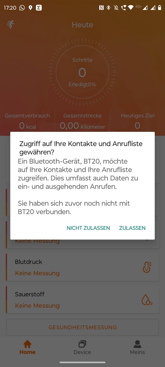 BT20 od Oukitel oferuje również znane okręgi do wyświetlania codziennych celów fitness. Okręgi przedstawiają liczbę kroków, pokonany dystans i spalone kalorie. Wyświetlanie to jest jednak możliwe tylko na samym smartwatchu, a nie w aplikacji. Cele można ustawić w aplikacji. Są one również sprawdzane podczas konfiguracji, ale wpisy nie są akceptowane w teście.