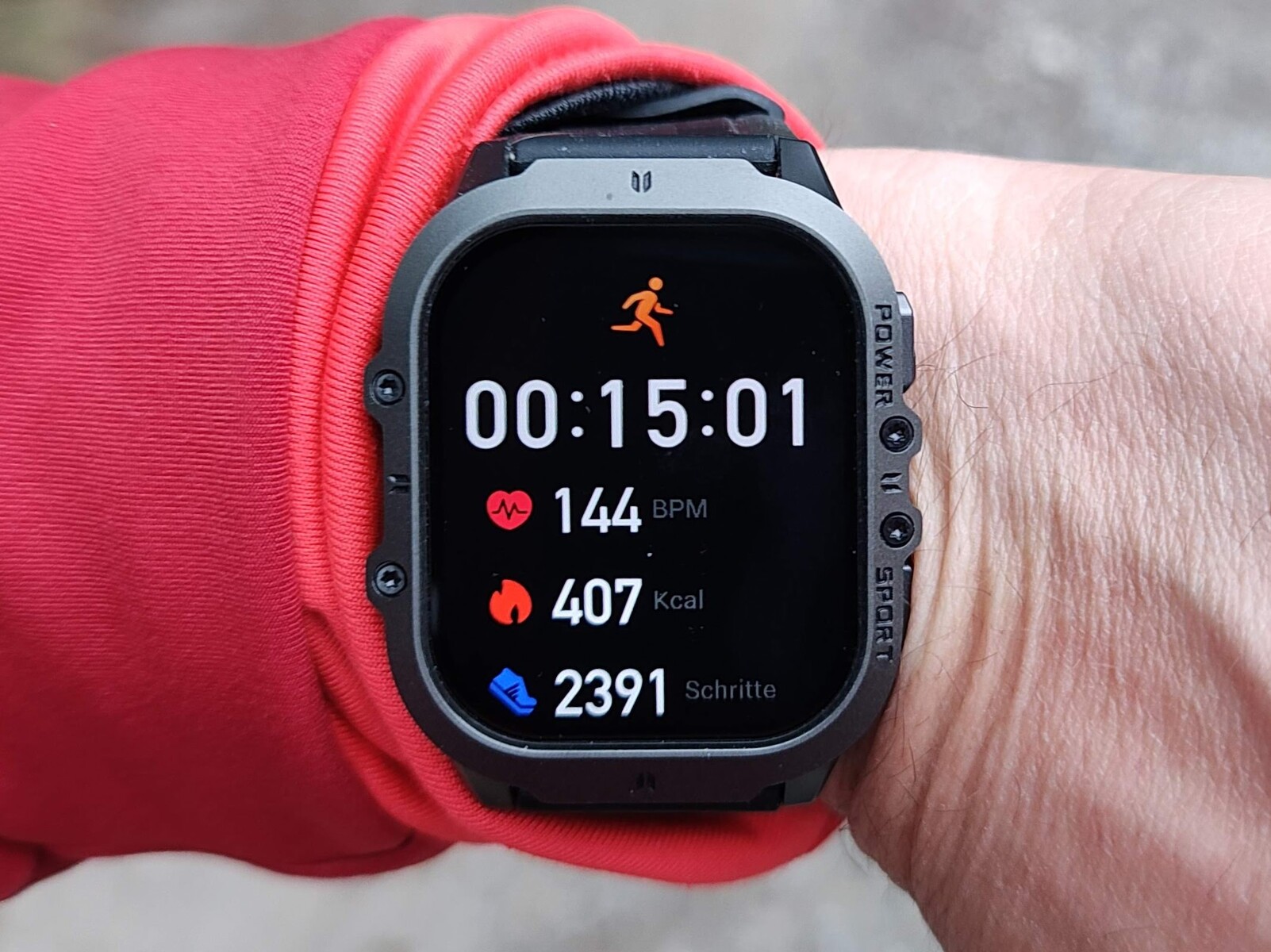 Jeśli nagrania zostaną znalezione, oprogramowanie dostarcza również informacji na temat długości kroku, kadencji i tempa, na przykład podczas joggingu. Podczas joggingu smartwatch może również rejestrować trasę, a przynajmniej dystans. Brakuje wyświetlania na mapie. Podczas jazdy na rowerze danych jest znacznie mniej; smartwatch dostarcza jedynie informacji o czasie i średnim tętnie.