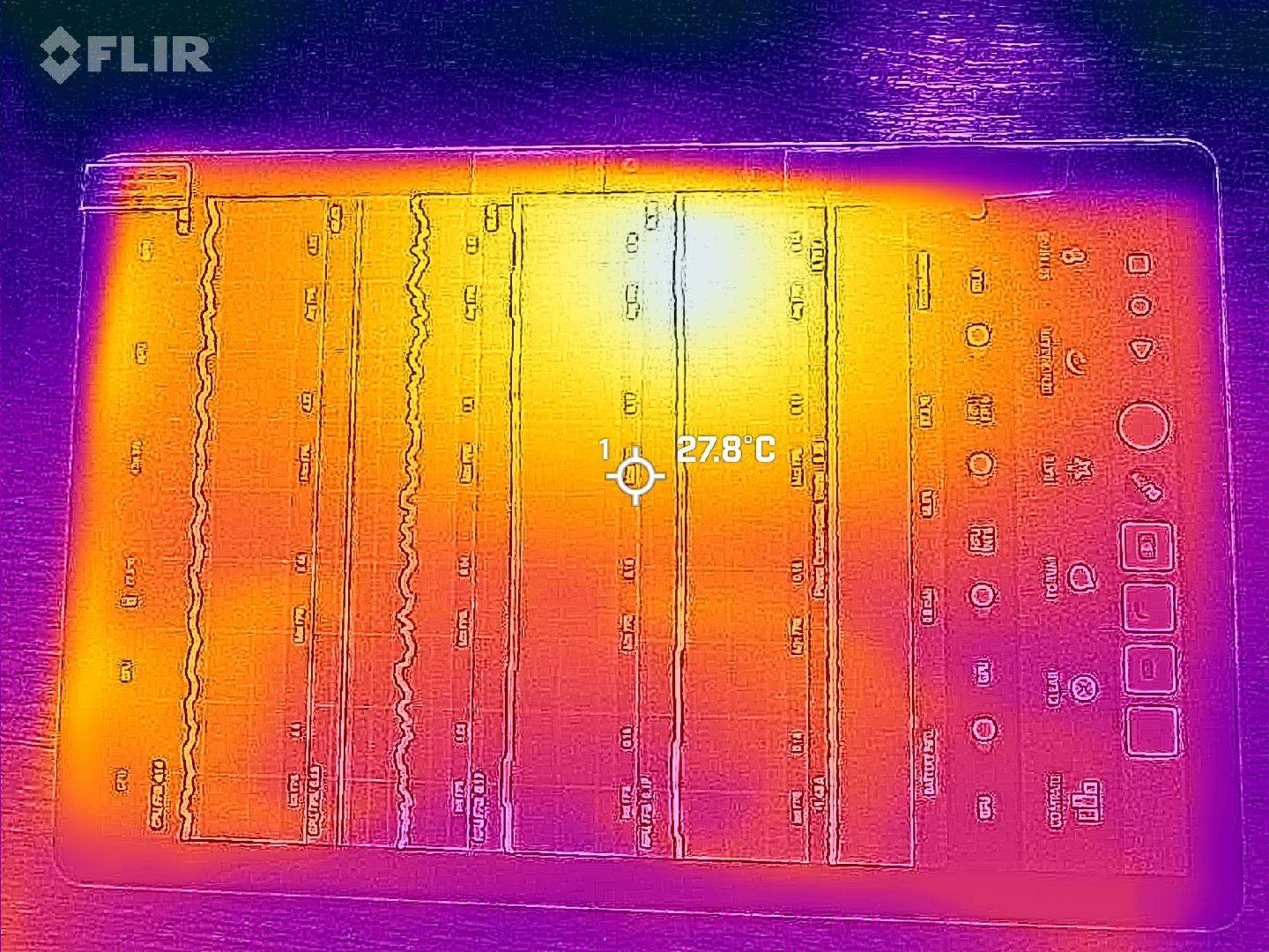 (+) Maksymalna temperatura w górnej części wynosi 31.2 °C / 88 F, w porównaniu do średniej 33.7 °C / 93 F , począwszy od 20.7 do 53.2 °C dla klasy Tablet.