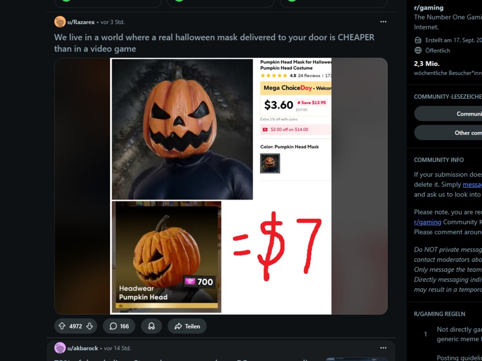 4 listopada post na Reddicie zatytułowany "Żyjemy w świecie, w którym prawdziwa maska na Halloween dostarczona do domu jest tańsza niż ta z gry wideo" stał się wirusowy. Post wskazywał, że maska w kształcie głowy dyni w Fortnite kosztuje dwa razy więcej niż podobna wersja w prawdziwym życiu. Uderzająca różnica w cenie szybko przyciągnęła uwagę, wywołując około 5 500 komentarzy w ciągu zaledwie trzech godzin.