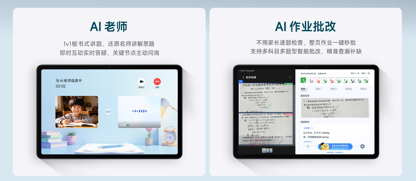 To, co odróżnia go od standardowej wersji, to dołączone kolorowe, wytrzymałe etui i inteligentny rysik. Etui ma zatrzask, gniazdo na rysik, a jego pokrywę można złożyć, aby służyła jako podpórka. Ponadto Xiaomi dodało nauczyciela AI, który wykorzystuje metodę nauczania 1 na 1 podobną do tej w klasie z sesjami pytań i odpowiedzi w czasie rzeczywistym podczas nauczania.