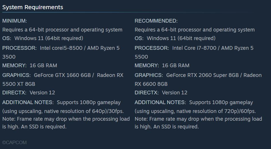 Jeśli korzystają Państwo z komputera PC/laptopa do gier, zalecane wymagania systemowe Resident Evil Requiem są następujące: