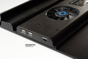 Konstrukcja obu przyrządów jest mało skomplikowana. Na froncie aluminiowej blachy mamy występ zabezpieczający laptop przed zsunięciem, zaś na stronie spodniej zmieszczono plastikowe kieszenie służące do przechowywania pod ręką drobiazgów i kabli zasilających (USB) oraz trzy wentylatory o średnicy 8 cm w przypadku RNC-3000 i dwa o średnicy 7 cm w mniejszej RNC-2100. Z boku, obok portu do zasilania, mamy po jednym dodatkowym gnieździe USB (chodzi o to, by chłodzony laptop nie tracił jednego po dopięciu kabelkiem podstawki).