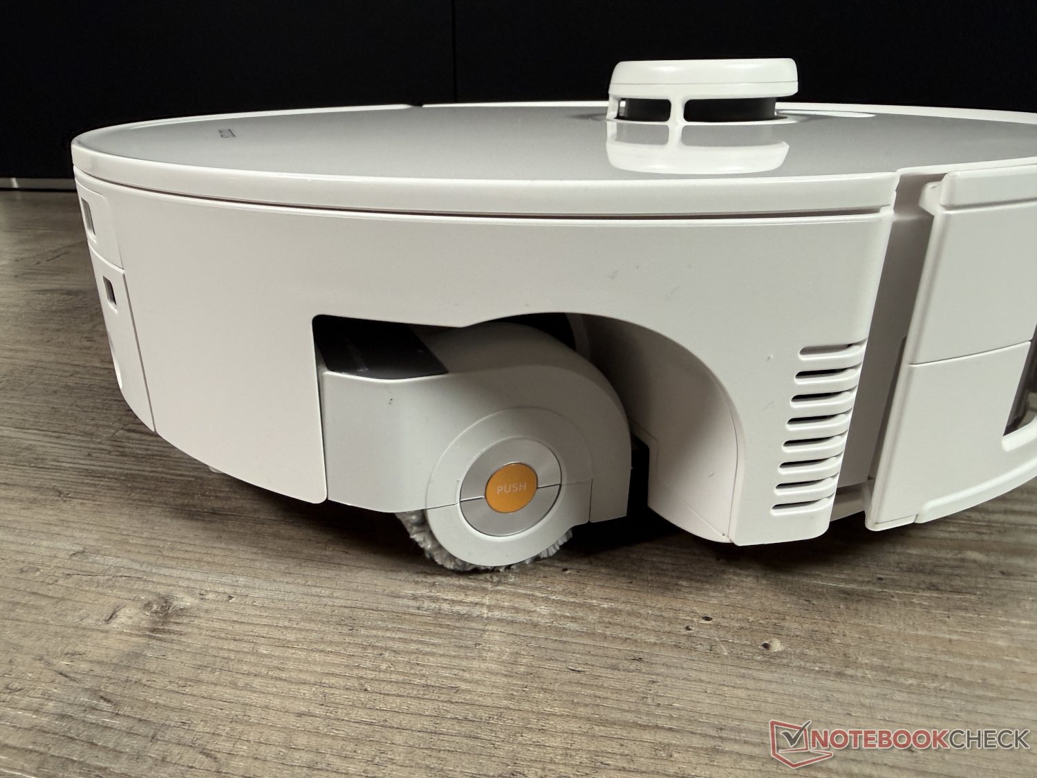 Roborock po raz pierwszy używa rolki mopującej w Qrevo Curv 2 Flow, wcześniej posiadając tylko modele z wibrującą ściereczką do mopa wibrującą ściereczką do mopa lub dwoma obrotowymi mopami w portfolio. Mierząca 27 cm rolka jest dość szeroka i można ją również rozłożyć na boki. Jednak ze względu na kilkumilimetrową bezpieczną odległość między plastikową osłoną a meblami itp., mopowanie nie jest tak płynne, jak w przypadku klasycznych mopów z funkcją wysuwania.