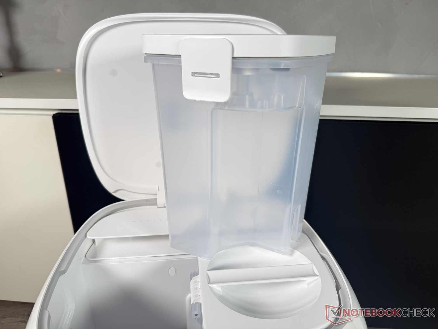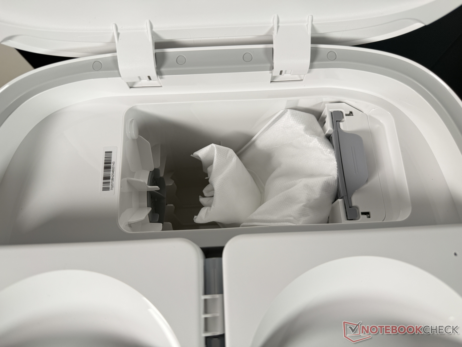 Ponowne przetwarzanie w stacji działało niezawodnie, dzięki czemu mop w kształcie rolki był zawsze ładny i czysty. Oprócz braku samooczyszczania w stacji, negatywnym aspektem testu było to, że stacja czyszcząca była dość głośna na poziomie około 45 dB (mierzone z odległości 1 m) podczas suszenia rolki mopującej. Roborock Qrevo Curv 2 Flow jest znacznie bardziej słyszalny, a zatem bardziej zauważalny przez kilka godzin niż niektórzy jego konkurenci. Należy o tym pamiętać, jeśli stacja ma być umieszczona bezpośrednio w środowisku mieszkalnym.