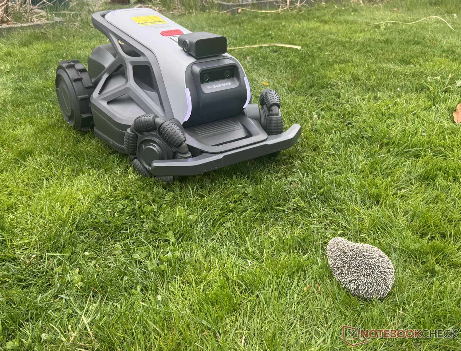 Funkcja wykrywania przeszkód działała lepiej podczas koszenia. Nasza atrapa jeża była tutaj niezawodnie wykrywana. Zazwyczaj unikała kawałka węża ogrodowego, ale rzadko unikała neonowożółtej piłki tenisowej na zielonym trawniku. Ogólnie solidnie, ale z możliwością poprawy.
