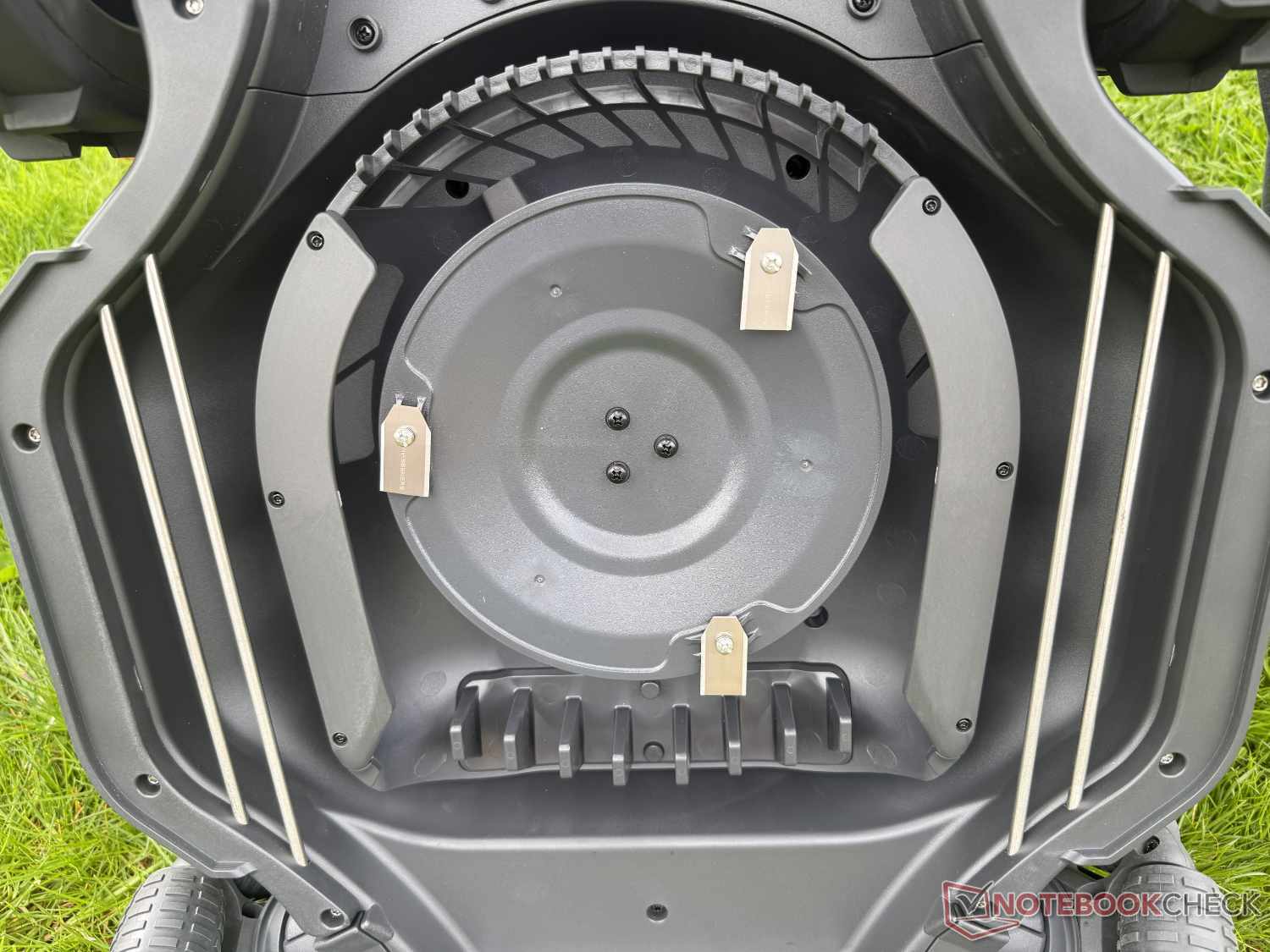 Pomimo dużych wymiarów kosiarki automatycznej, nie kosi ona za pomocą podwójnej kosiarki, ale za pomocą pojedynczej tarczy tnącej. Ma ona standardowy rozmiar 22 cm i posiada specjalną funkcję. Łącznie zainstalowanych jest sześć ostrzy, po dwa na sobie, oddalone od siebie o dobry centymetr. Zostały one zaprojektowane nie tylko do cięcia trawy na ustawioną wysokość od 30 do 90 mm (wybieraną w odstępach co 10 mm), ale także do cięcia bardzo drobnej trawy w tym samym czasie. Producent nazywa to mulczowaniem FlowCut. Alternatywnie, większa tarcza kosząca 300 mm może zostać doposażona za 50 USD.