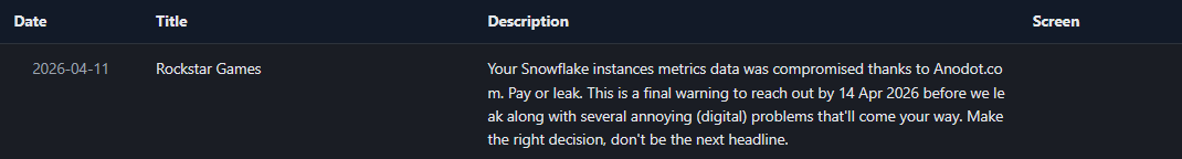 Według RansomLook.io i CyberSec Guruatakujący nie naruszyli bezpośrednio obwodu Rockstar. Zamiast tego rzekomo wykorzystali zautomatyzowaną integrację za pośrednictwem Anodot, zewnętrznej platformy monitorowania kosztów w chmurze. Grupa twierdzi, że uzyskała dostęp do środowiska Snowflake firmy Rockstar (którego firma używa do przechowywania i zarządzania między innymi danymi analitycznymi i telemetrią graczy) poprzez zbieranie tokenów uwierzytelniających z Anodot. Korzystając z tej metody, atakujący mogą ominąć standardowe uwierzytelnianie wieloskładnikowe, używając legalnych tokenów usług, które pozostają ważne przez dłuższy czas. Wydaje się, że ten rodzaj luki w łańcuchu dostaw stał się głównym wektorem dla ShinyHunters na przełomie 2025 i 2026 roku.