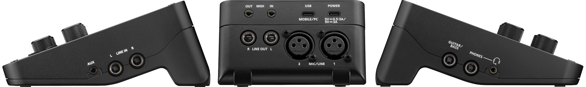 Go:Mixer Studio obsługuje dwa wejścia 1/4"/XLR z zasilaniem phantom, jedno wejście gitarowe/basowe, dwa wejścia liniowe 1/4" (L/R), jedno wejście aux 1/8" i jedno wejście mikrofonu słuchawkowego. Interfejs wysyła zmiksowany dźwięk analogowy przez wyjście liniowe i wyjście słuchawkowe lub dźwięk cyfrowy w rozdzielczości 24-bitowej, 44,1 kHz do 192 kHz przez port USB-C.