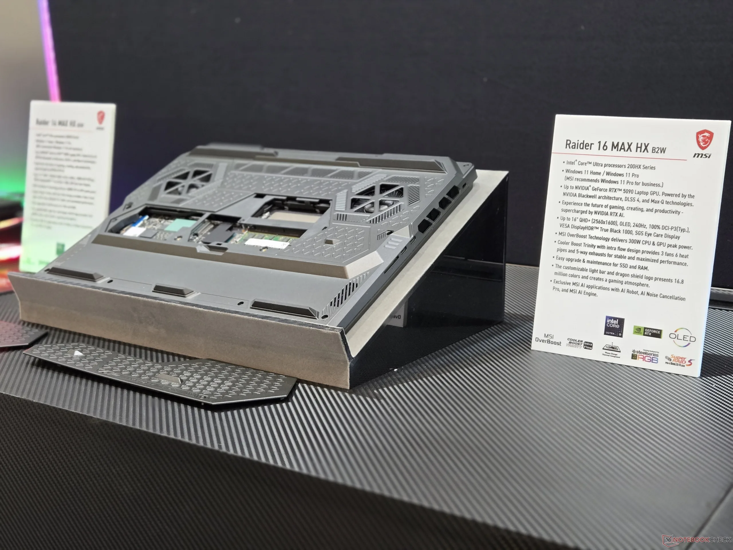 Zaprezentowany zaledwie kilka tygodni temu na targach CES 2026nowy Raider 16 HX Max będzie działał na znanych procesorach Intel Arrow Lake-HX i sprzęcie Nvidia Blackwell, podobnie jak model 2025. Obudowa została jednak przeprojektowana w tym roku z nowym włazem na dolnym panelu, aby ułatwić dostęp do komponentów, które można rozbudować, jak pokazują poniższe zdjęcia. W tym przypadku właściciele będą mogli zainstalować do dwóch modułów DDR5 SODIMM i dwóch dysków SSD M.2 PCIe5 bez konieczności otwierania całego dolnego panelu.
